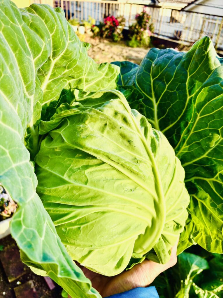 さらに地域の方から、自家菜園で採れたてのキャベツや白菜をいただきました![]()