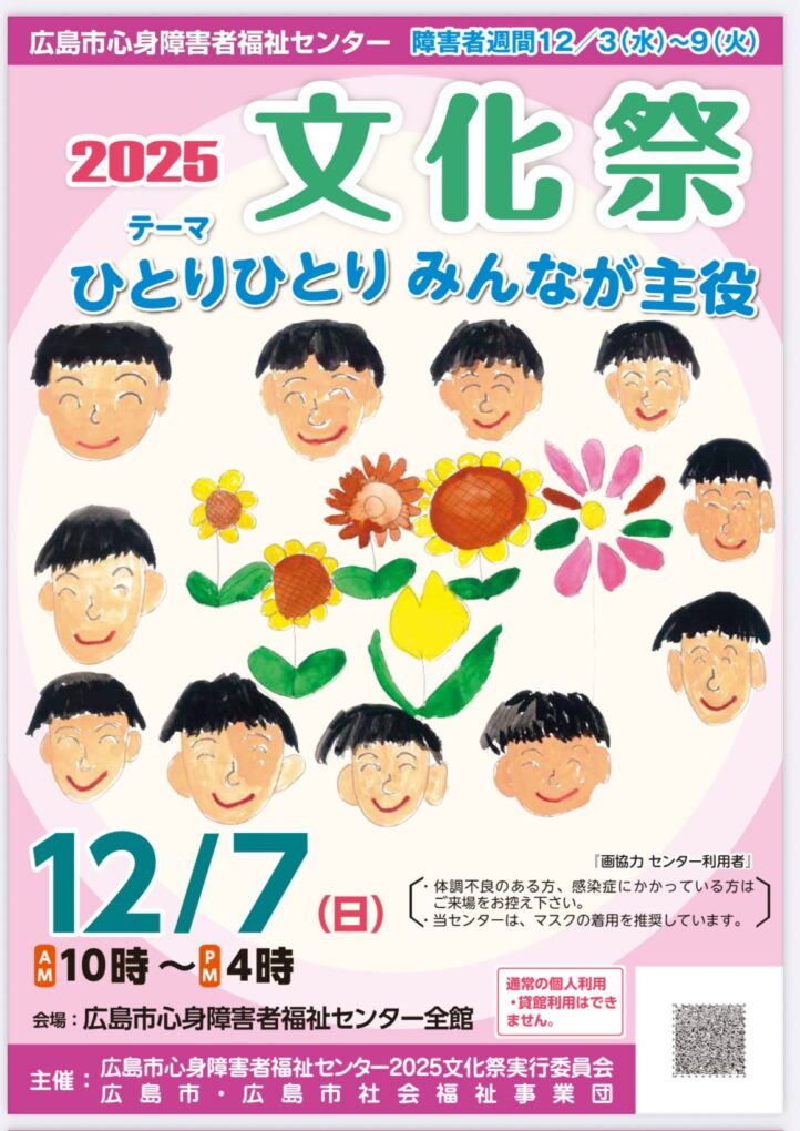 12月7日には、広島市心身障がい福祉センターで 文化祭 も開催されます![]()
