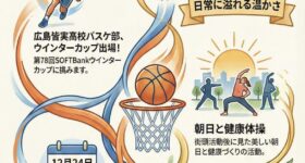 2025年12月18日 / Last updated : 2025年12月23日 事務局 活動報告 ✨🏀頑張れ広島!バスケットボール🏀✨ 12月18日、初めてSoftBankウィンターカップ に挑む比治山高校、そして ジュニアウィンターカップ に出場する比治山中学校へ激励に行ってきました。 中学生のカテゴリーでは、娘のチームと決勝を戦わせてもらったご縁。 […]